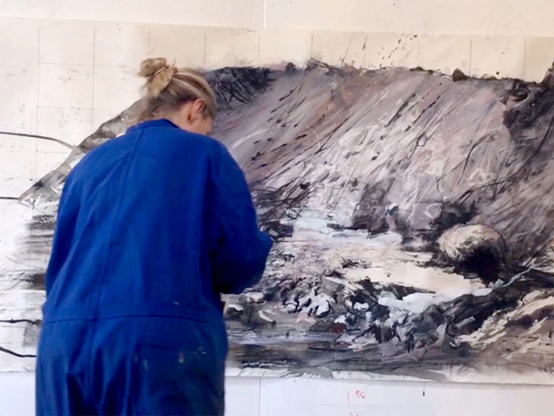 A year ago, I started recording birds, the first was a nightingale. Since then, I have spent most of the year researching and working with sonograms through woodcuts etchings and drawings trying to find visual equivalents . At the beginning of March I visited a friend who lives in central France – a very deserted area and I made a series of recordings of sounds on a walk, each stop being between 20 – 40 seconds long.