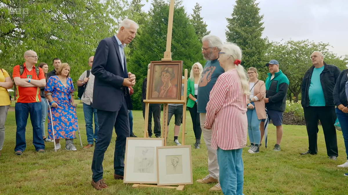 Janice Goble and Madoc Roberts presented a small selection of Cecily Hey’s artworks to Antiques Road Show expert Rupert Maas.