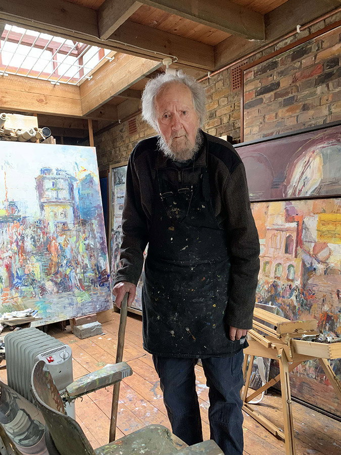 Elected to the London Group in 1961, Anthony Eyton is one of our oldest (100) and longest-serving members. Matthew Kolakowski (Tony’s son-in-law), discusses his historical perspective of The London Group, reflecting on mortality, chaos and positivity.