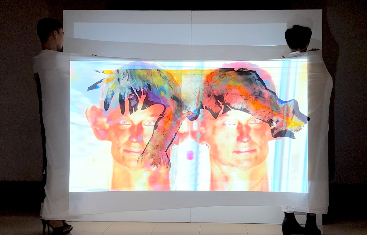 Over the 3 evenings following Incarnation, another performance called Overlapping was scheduled. Created by Golf, it was previously staged in Bangkok and also in Chiang Mai at a different venue. These versions had incorporated video footage from some of our earlier workshops (Invocation). For this extended version of Overlapping, Golf and Chai wanted to replace the video footage with a live augmented reality set, ie: me going on stage to invoke the life-size AR of Roy and have Sade interact with him. Overcoming my personal demons of being on stage, the main challenge was the tech – AR needs to be able to locate against other visual hooks – such as furniture, floor coverings, wall decoration. In the darkened theatre, with black walls and dark grey floor and with one down-spot, the AR was unpredictable and liable to drift off into the darkness at the edge of the stage. With little time to rehearse and resolve the tech issues, I felt that it wasn’t till the final performance on the Sunday afternoon that I really delivered the performance promised. And then I just wanted to keep going.