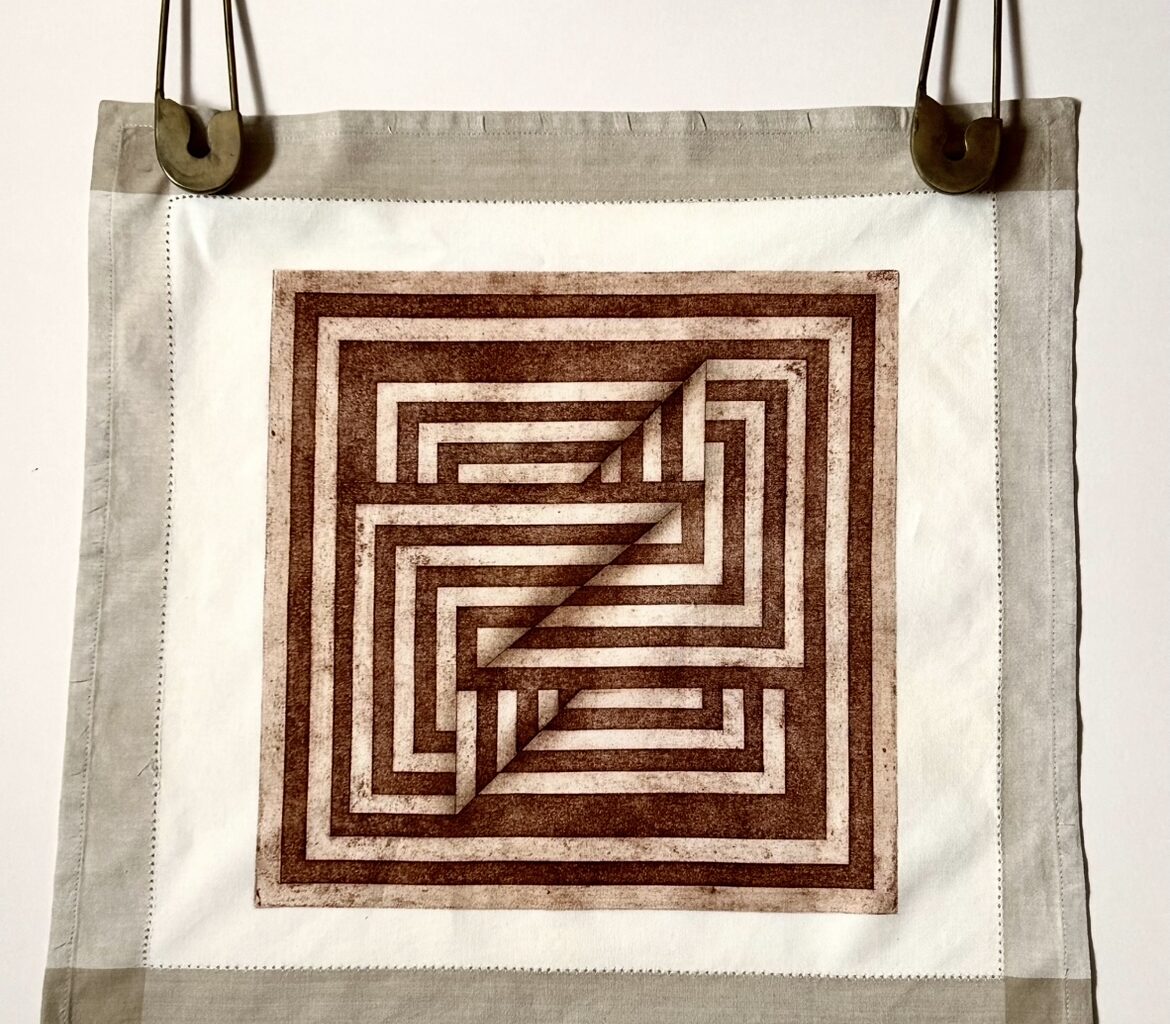 M.C. Escher’s Handkerchief 2 on a fabric hand-sewn handkerchief was the winning piece: