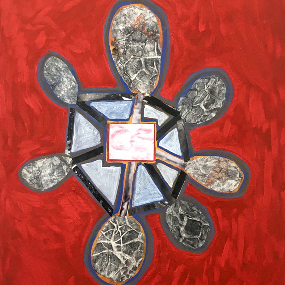 Collage and handmade oil paints on canvas by Wendy Anderson, a London Group member since 1998