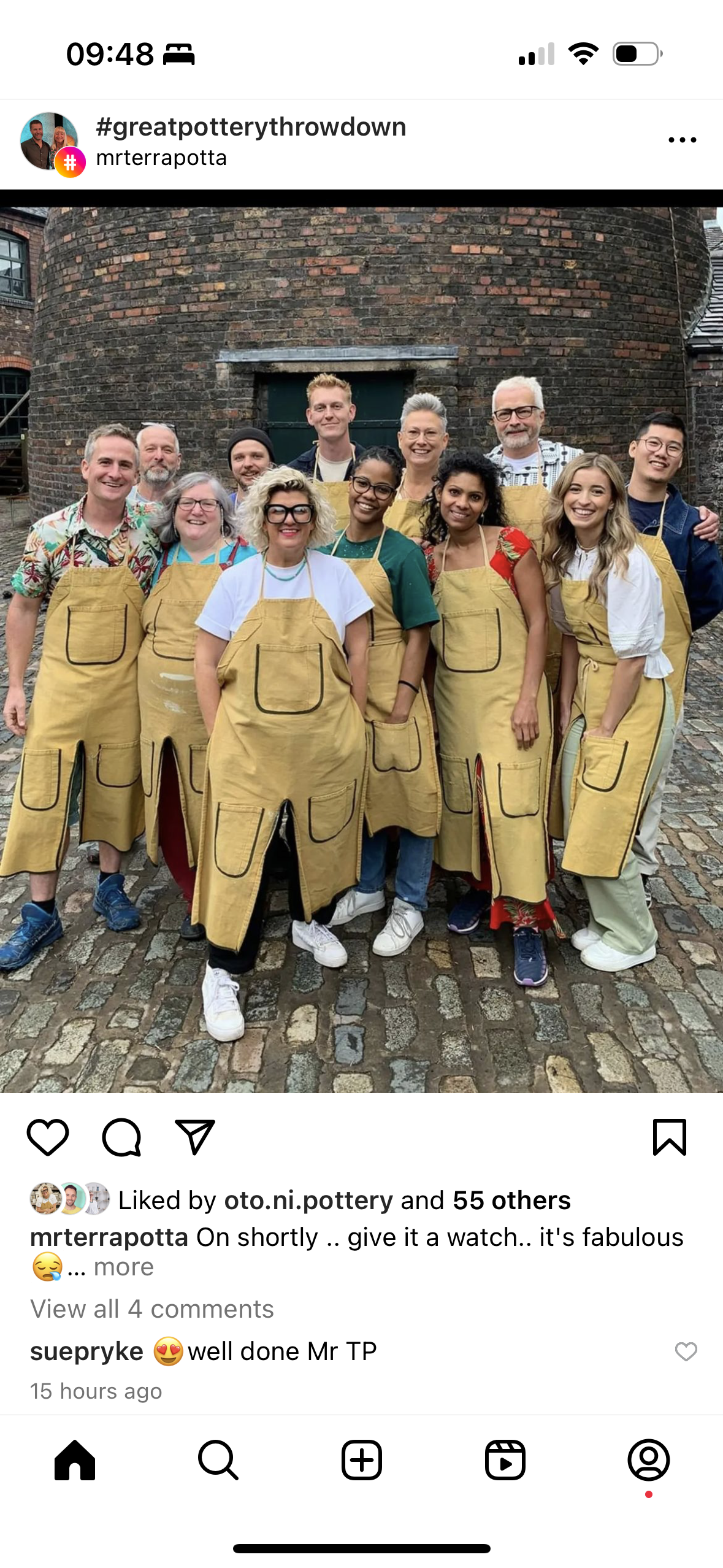 “Decided to branch out and went to play with a ton of clay last year, the results of which can be seen on Channel 4, Sunday evenings for the next few weeks.
