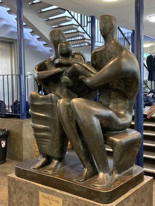 25 years ago, the charity Children in Need asked me to give a series of talks to secondary schools in North Hertfordshire. At the time, I’d given up any ideas of being an artist and was doing ‘proper’ work instead. So turning up at Barclay School in Stevenage, with my head full of what I hoped were useful facts and taking a last look at my lecture notes, I walked – almost literally – into the Family Group. When I’d recovered my notes, and from my surprise at seeing such an extraordinary bronze sculpture in front of a school, the waiting & amused Headteacher gave me a potted history of how they had been its proud owners since Henry Moore delivered it to them in 1950.